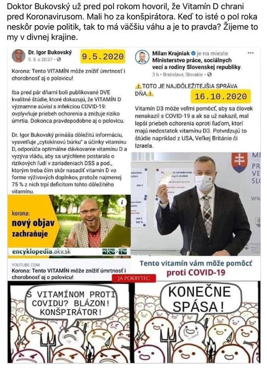 @JG Dik. Len si myslim, ze ta Matovicova reakcia nebola na vitamin D ale cosi ine - ved tam je aj niekolkomesacny rozdiel. Nemyslim si, ze ho niekto oznacoval za konspiratora v case ked hovoril len o vitamine D.